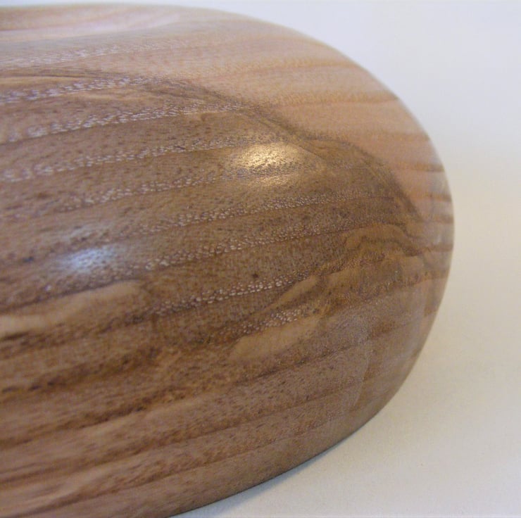 A really nice piece of Ash from a local supplier, it has a striking grain pattern with some natural colouration down one side making it unique. It would make a lovely addition to a home as a decoration or a practical food or storage bowl.
