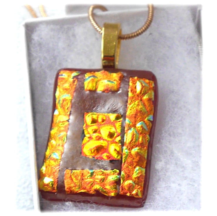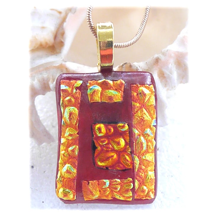 Red Gold Patchwork Dichroic Glass Pendant 202 Gold plated chain