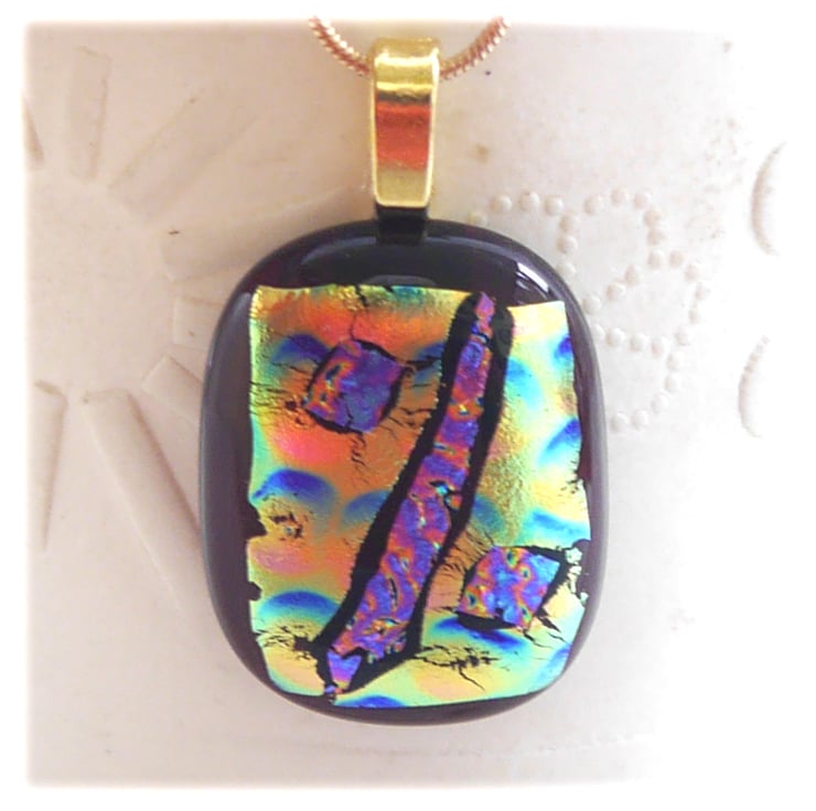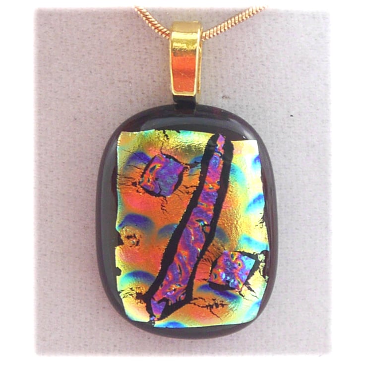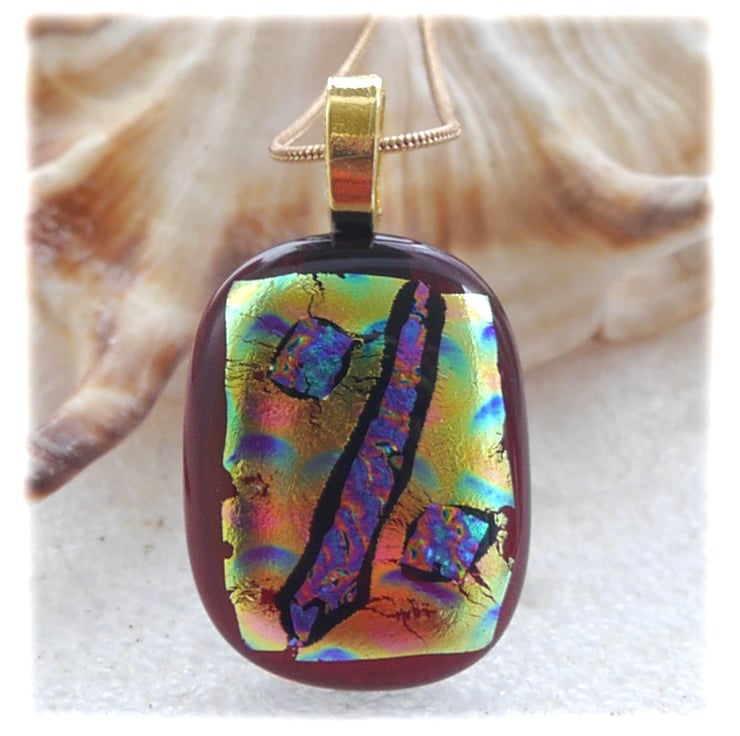 Cranberry Gold Patchwork Dichroic Glass Pendant 209 gold plated chain