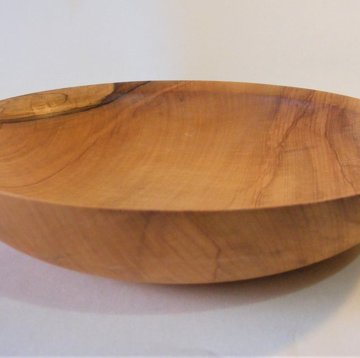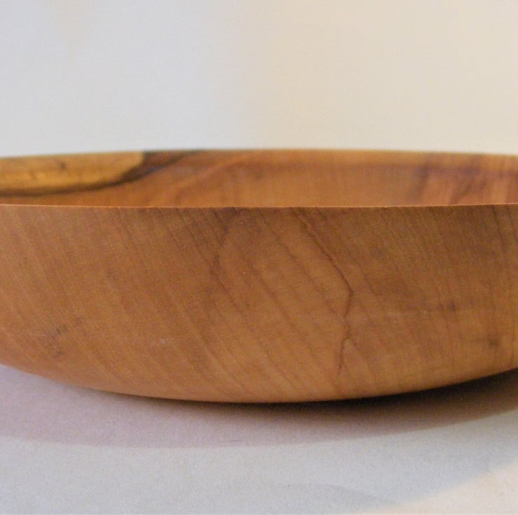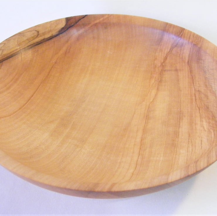 Spalted Horse chestnut food bowl, 196 x 42mm, Finished in food safe Danish oil. A gently curving bowl with a plain in turned rim. The piece has some lovely natural patterns from the spalting process (natural process in the wood) with streaks of browns and pinks as well as some darker lines to one side. It would make a nice decorative piece or a practical food or storage bowl.