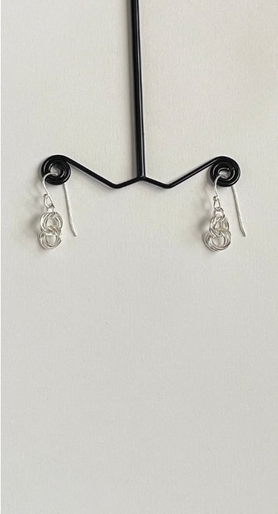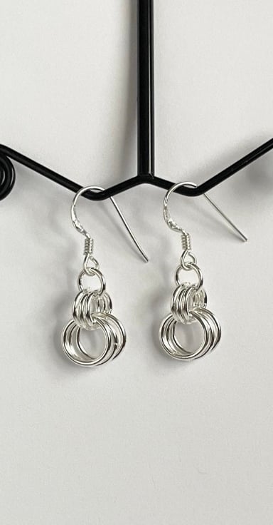 Sterling silver rings have been linked to create these simple styled chainmaille earrings, that compliment any outfit or hairstyle.