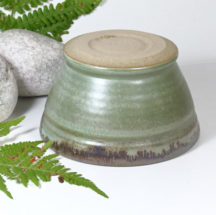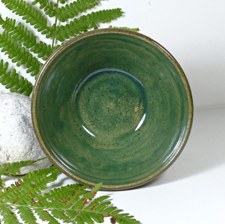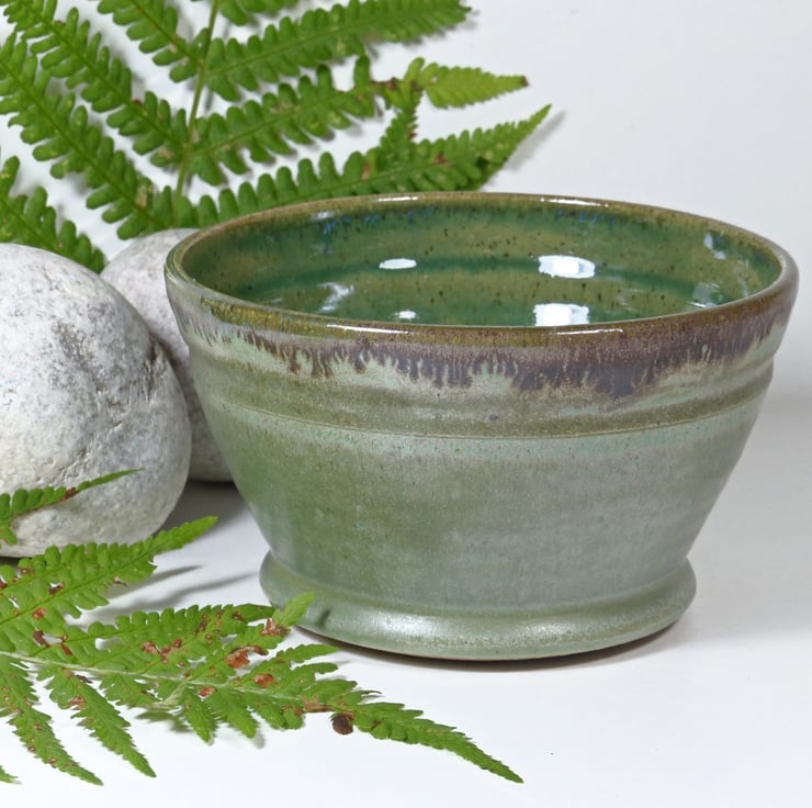 I threw this bowls on the potters wheel using a strong stoneware clay. I then turned the base to make a foot ring. It was then fired to a bisque before being glazed in three contrasting and complimentary green glazes and refired to 1240C.
