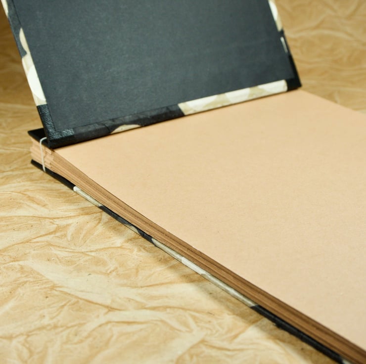 Beautiful handmade photo album or scrapbook. Ideal for holding on to your favourite memories and important events. Kraft pages will display a single large photo or a collection of smaller pictures. The 260gsm paper is strong enough to allow handwritten ink labels and annotations.