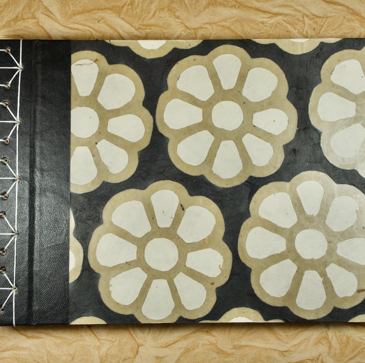 Photo album with Japanese stab binding, handmade Nepalese batik paper cover and Kraft paper pages.