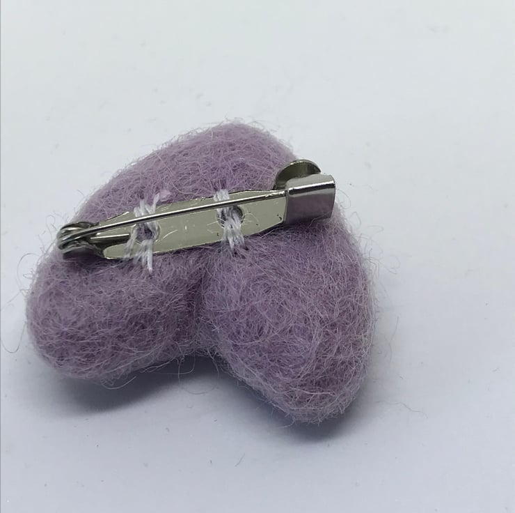 Needle felted heart embroidered with embroidery threads. This is a lovely shade and of lilac and has a simple flower embroidered onto the needle felted heart shape. I have sewn a brooch pin on the back so you can pop it onto a favourite matching jumper , jacket, coat or dress. I like the thought that you can send your heart to a loved one in the form of a brooch. It comes complete with a 2 inch square kraft jewellry box.