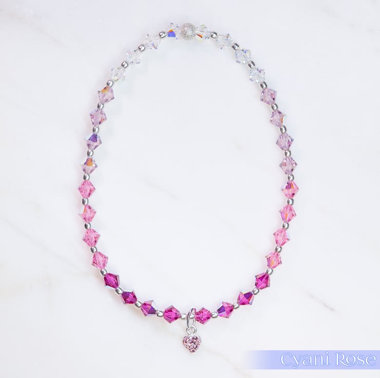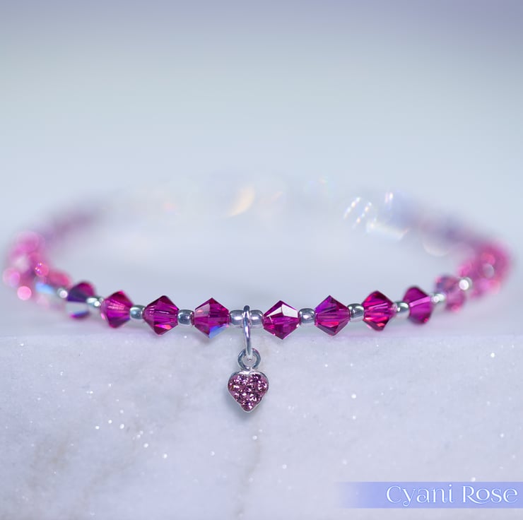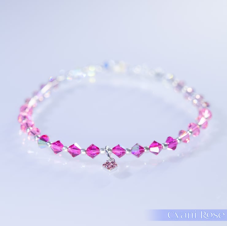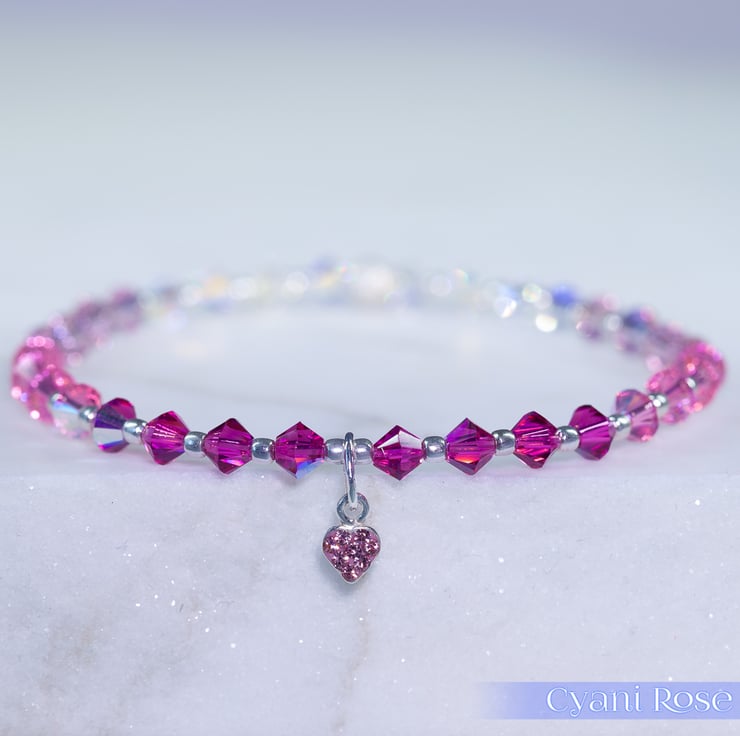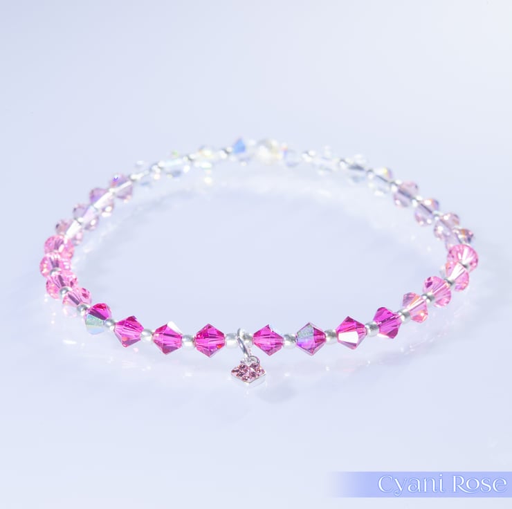 Bracelet in shimmering pink with Swarovski, Sterling Silver & Czech Glass beads