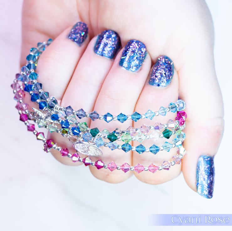 Beautiful handmade beaded charm bracelet, with delicate shimmer beads for extra sparkle.
