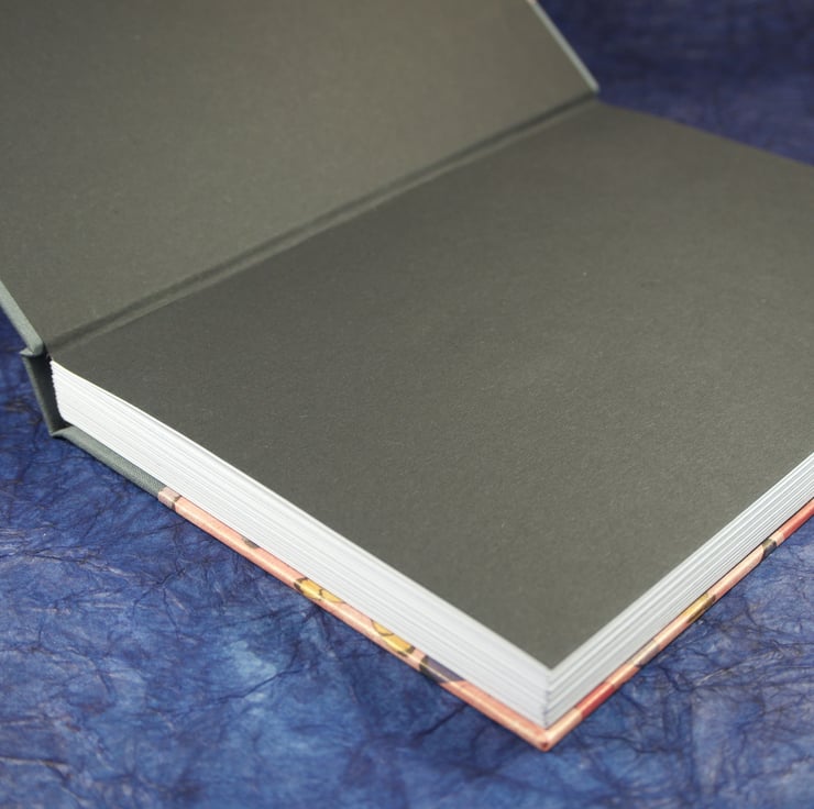 This hand-crafted book is ideal for journaling, doodling, list-making and creative writing. Filled with smooth, white 120gsm plain paper which takes pencil, dry art media and ink with minimal bleed-through.