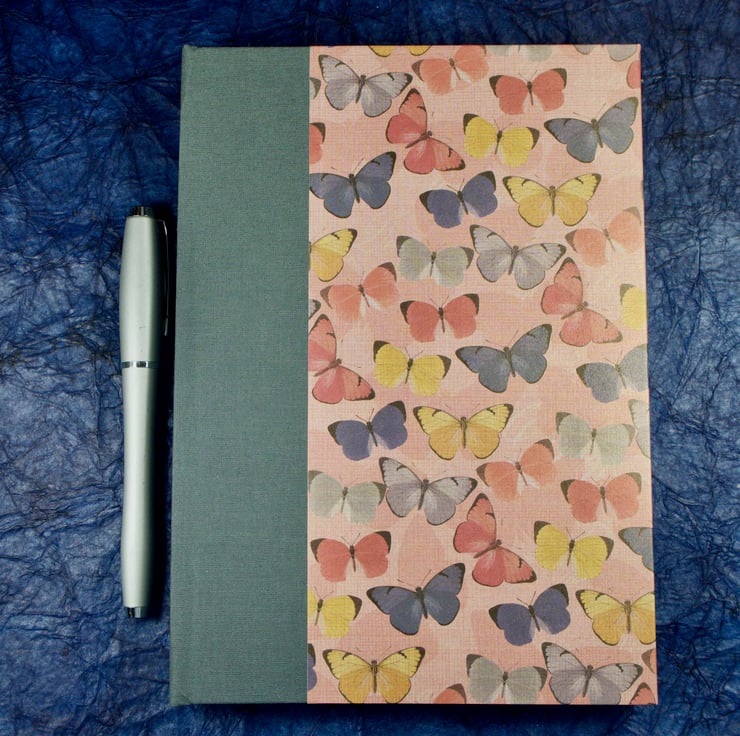 A5 notebook with coordinating spine and pearlised paper butterfly cover