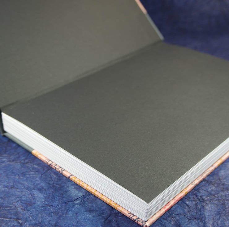 This hand-crafted book is ideal for journaling, doodling, list-making and creative writing. Filled with smooth, white 120gsm plain paper which takes pencil, dry art media and ink with minimal bleed-through.