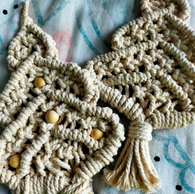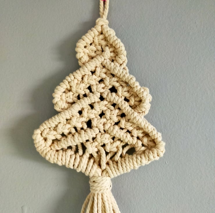 Pair of macrame Christmas tree decoration. Ideal to hang on the tree or wall.
