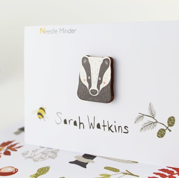 We've added these very cute wooden magnetic needle minders to our range. This listing is for a wooden badger. They are designs created for our winter fabrics, and there are 4 cute characters to choose from. They are made from wood, and are magnetic to hold your needle in place when your working on your embroidery or cross stitch projects. These make a lovely gift for friends and family who loves crafting, needlework, cross stitch etc, they add a fun element to crafting.