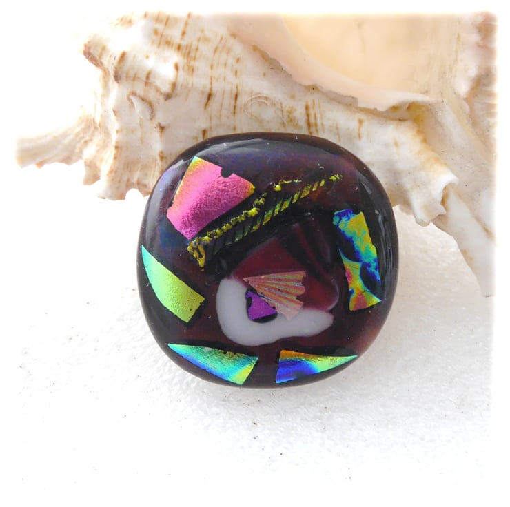 Patchwork Dichroic Fused Glass Brooch 049 Handmade