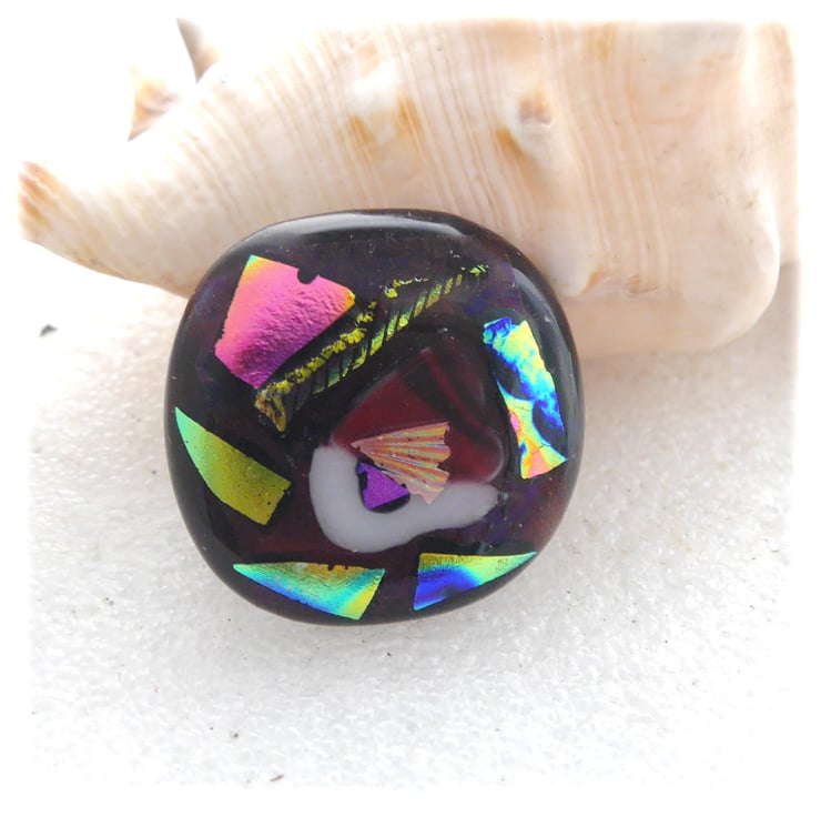 The dichroic glass cabochon for this brooch was handmade, by me, with love.