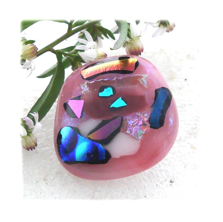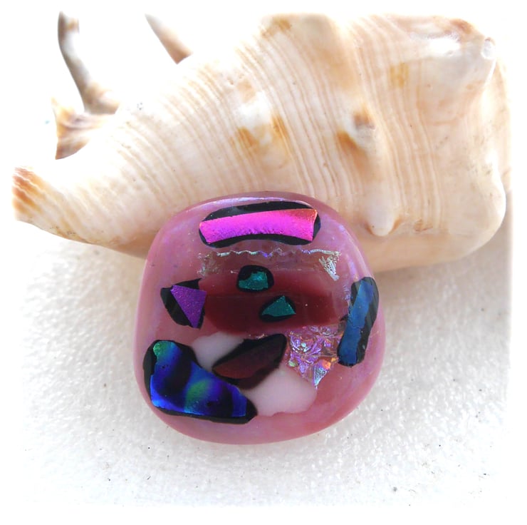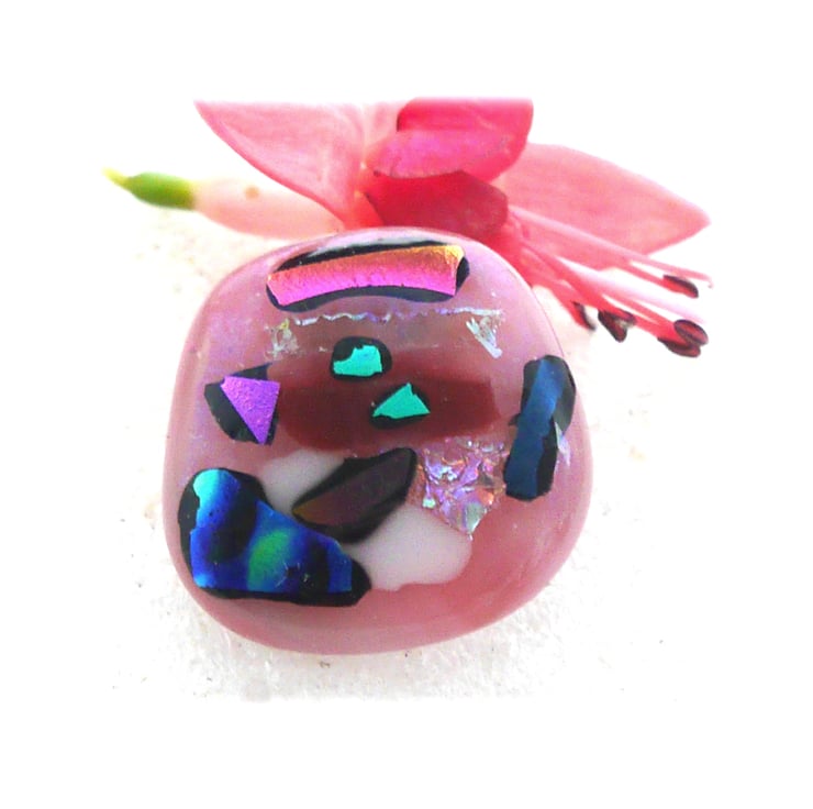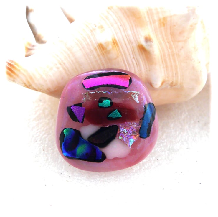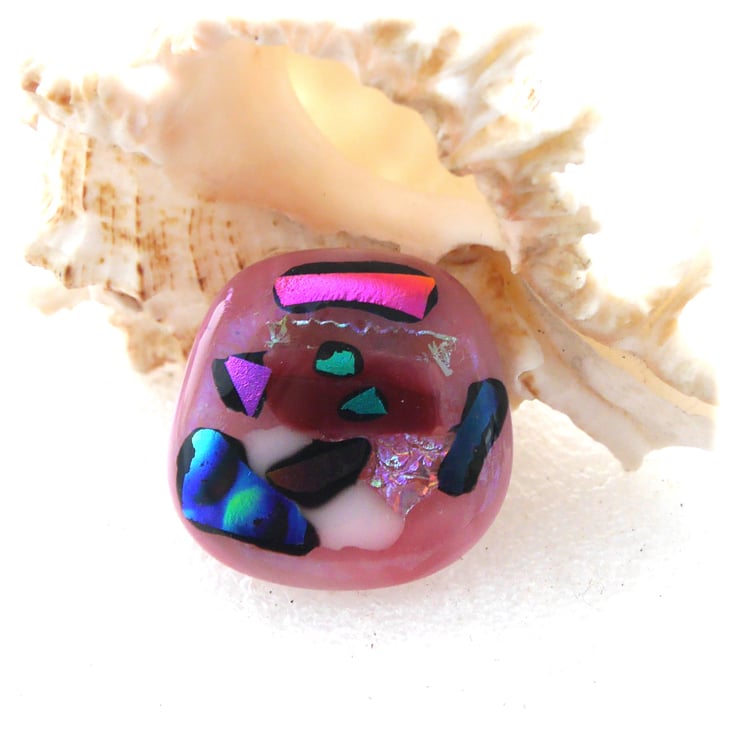 The dichroic glass cabochon for this brooch was handmade, by me, with love.