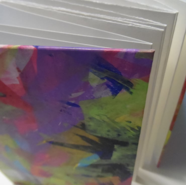 During this workshop I will be demonstrating how to paint your own cover using simple techniques with acrylic paint and will then show how to make a hard cover A5 concertina book.