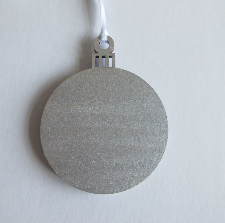 The bauble is 7cms diameter, and has a ribbon for hanging it by,