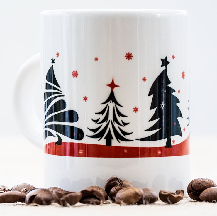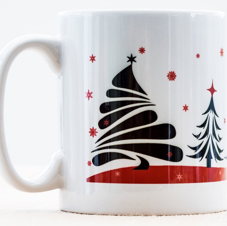 This lovely Christmas themed mug is the perfect stocking filler or secret Santa gift for any coffee lover. The unusual, whimsical design shows graphic silhouettes of crazy Christmas trees. A sophisticated present that is sure to put a smile on the recipient's face!