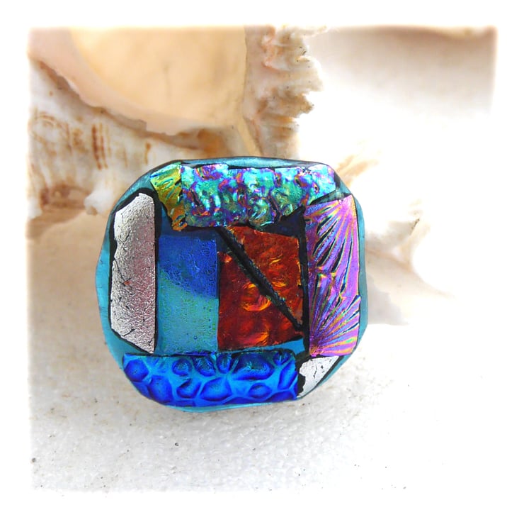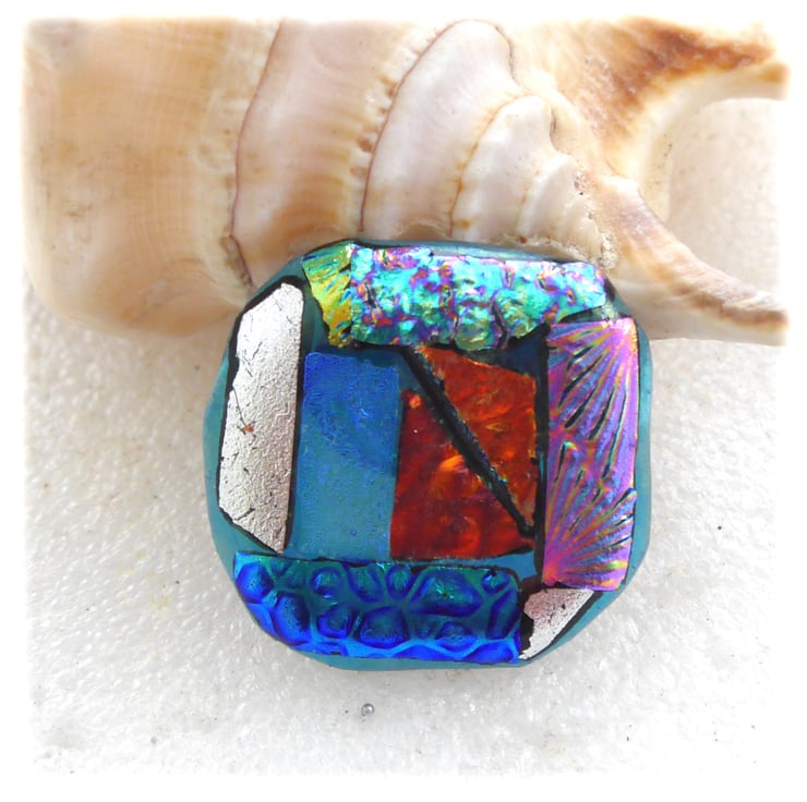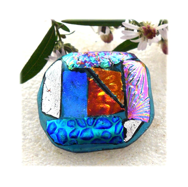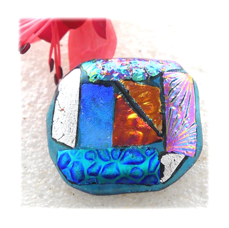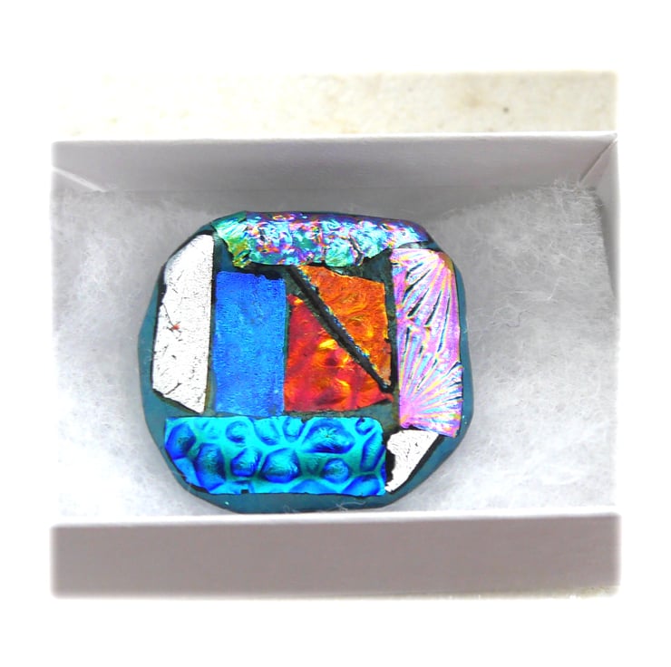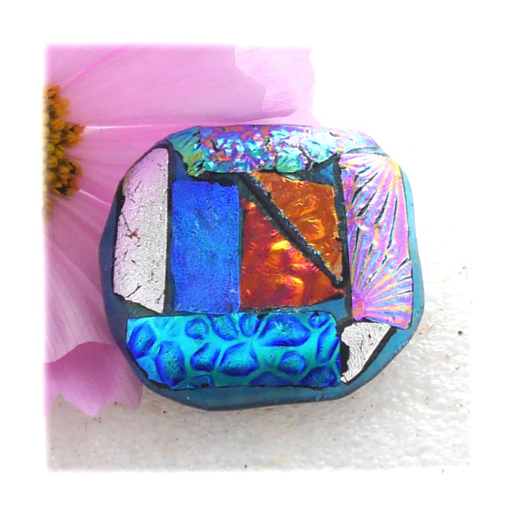 Patchwork Dichroic Fused Glass Brooch 063 Handmade