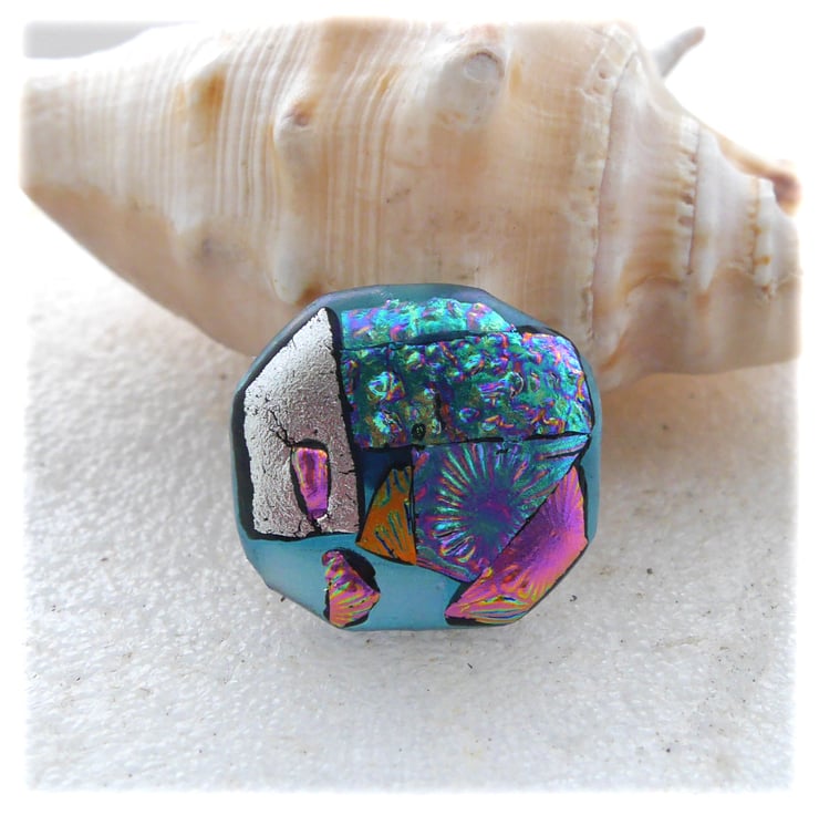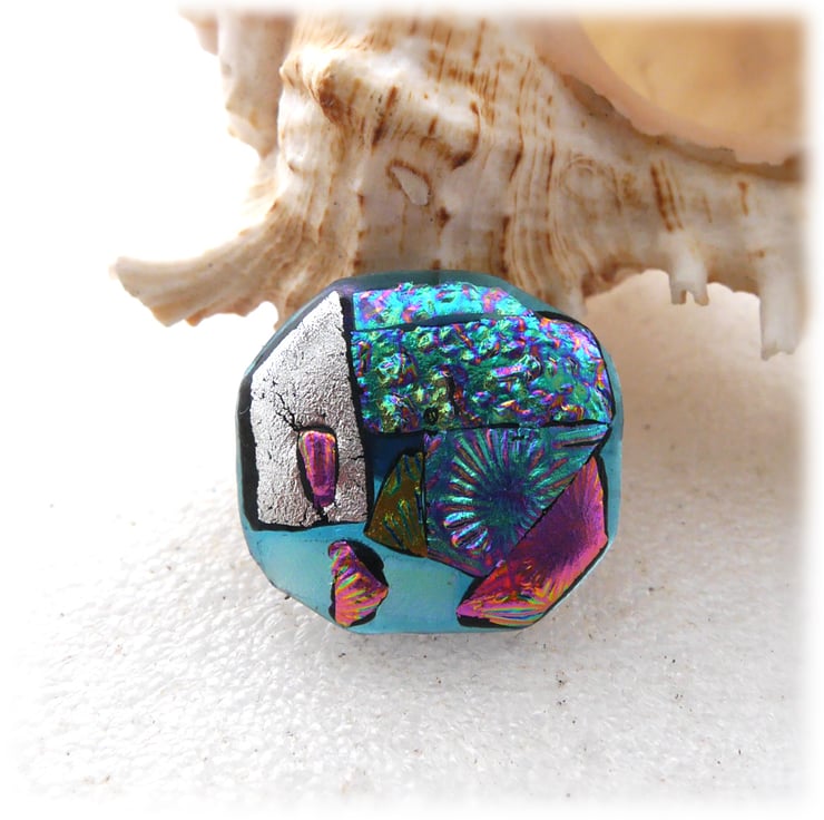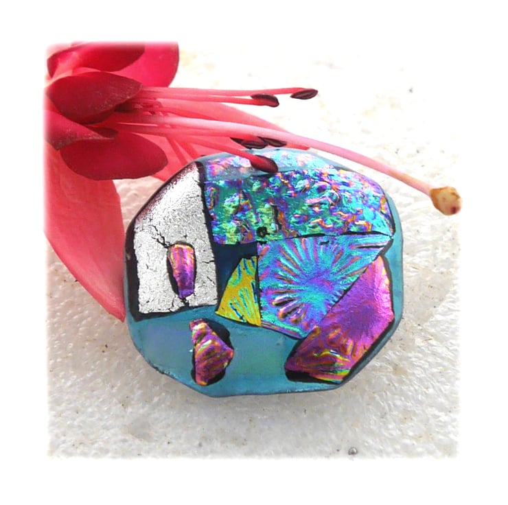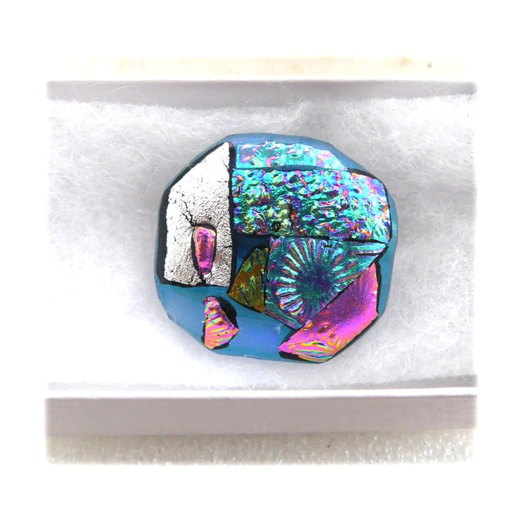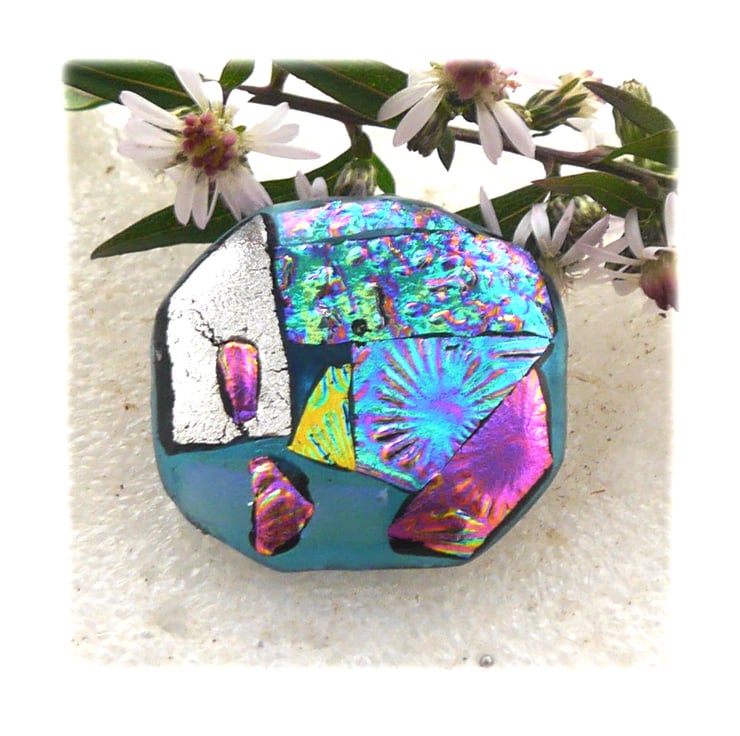 Patchwork Dichroic Fused Glass Brooch 065 Handmade