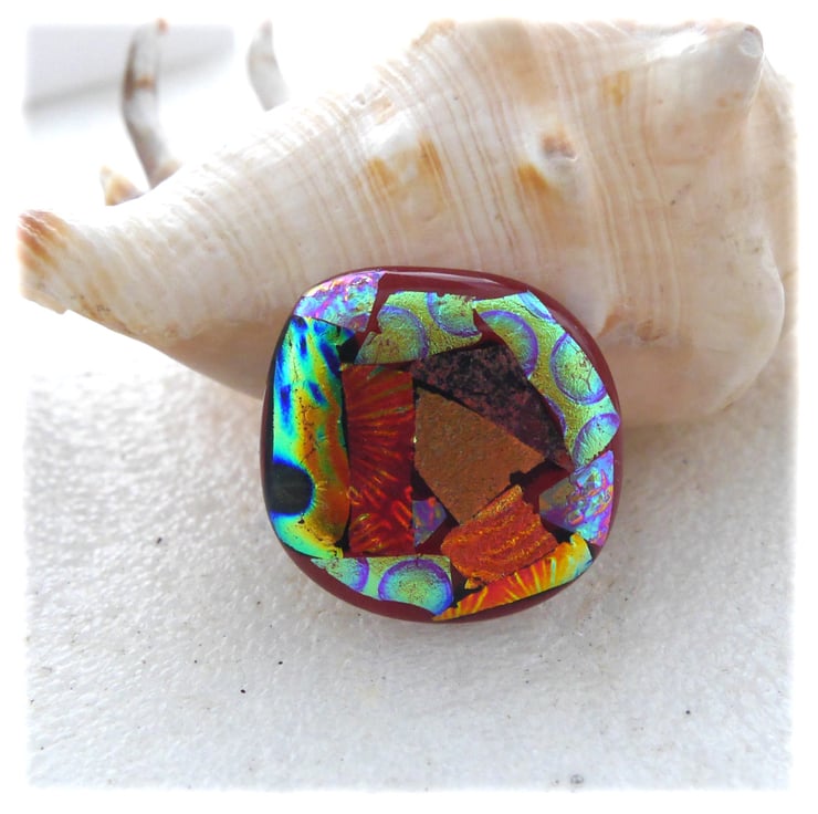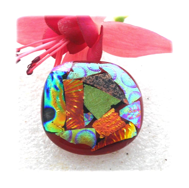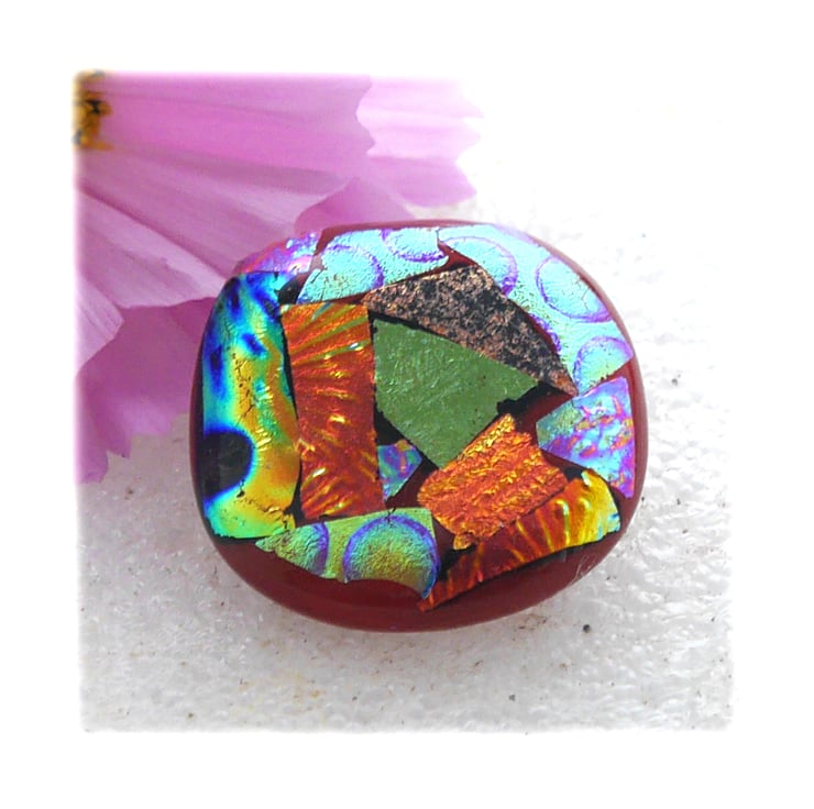 The dichroic glass cabochon for this brooch was handmade, by me, with love.