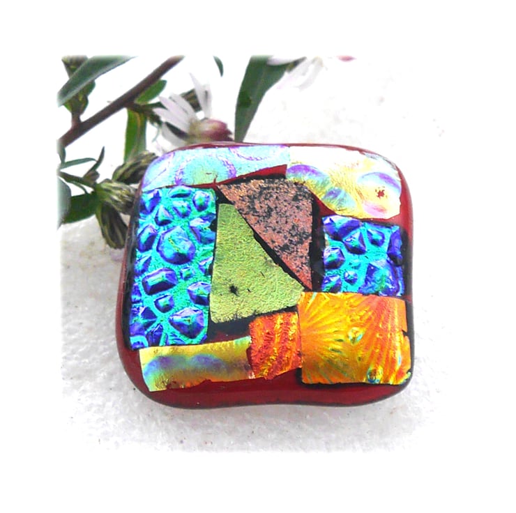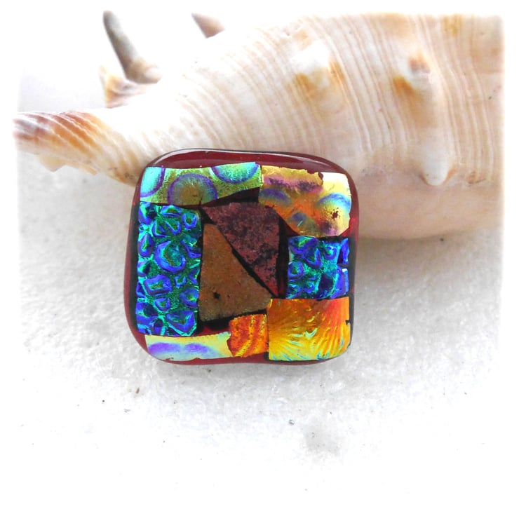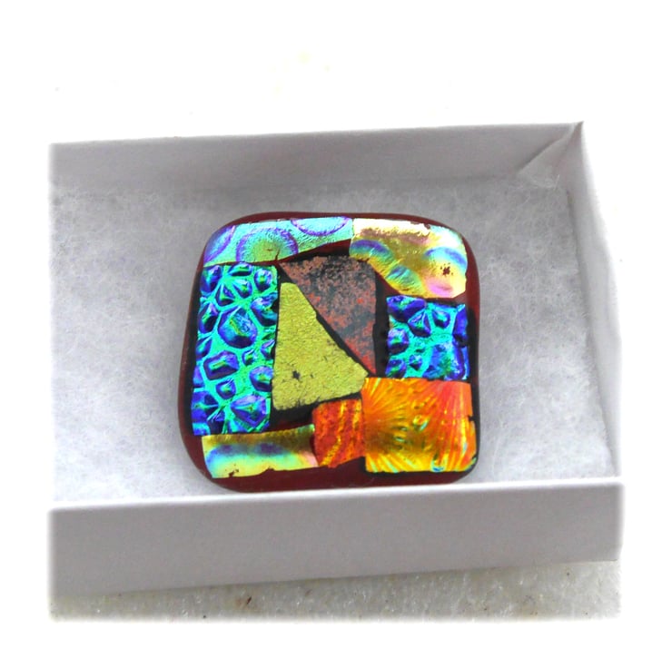 Patchwork Dichroic Fused Glass Brooch 071 Handmade