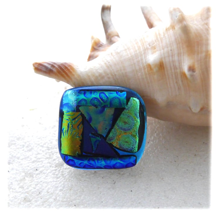 Patchwork Dichroic Fused Glass Brooch 072 Handmade