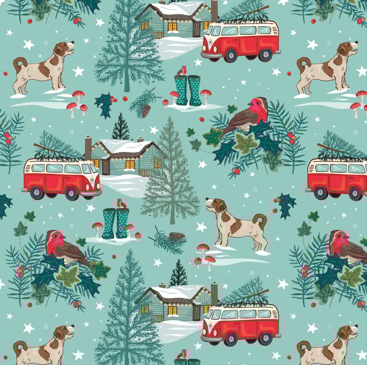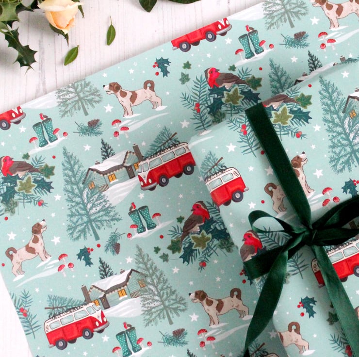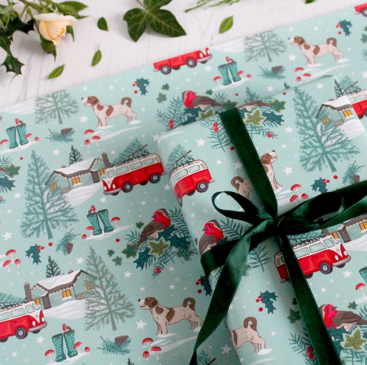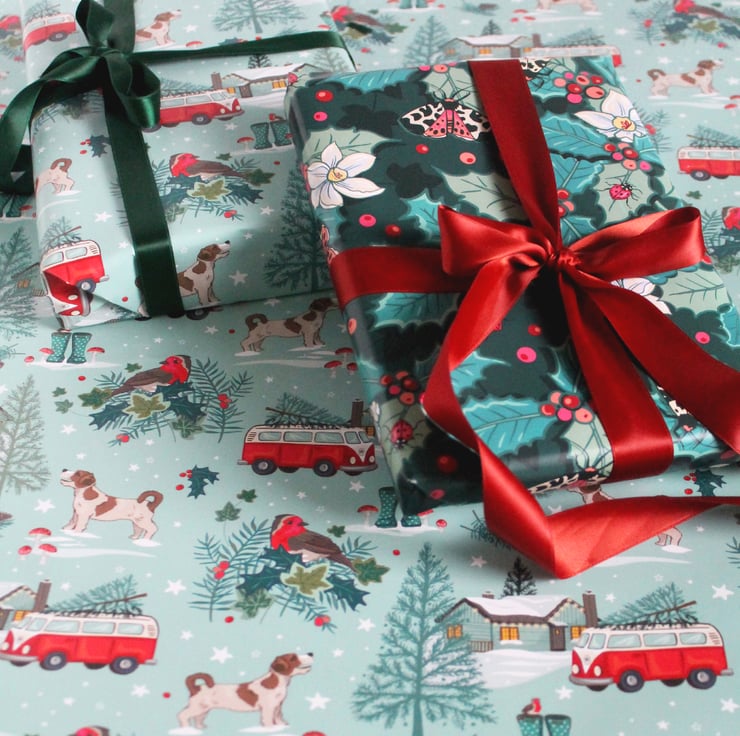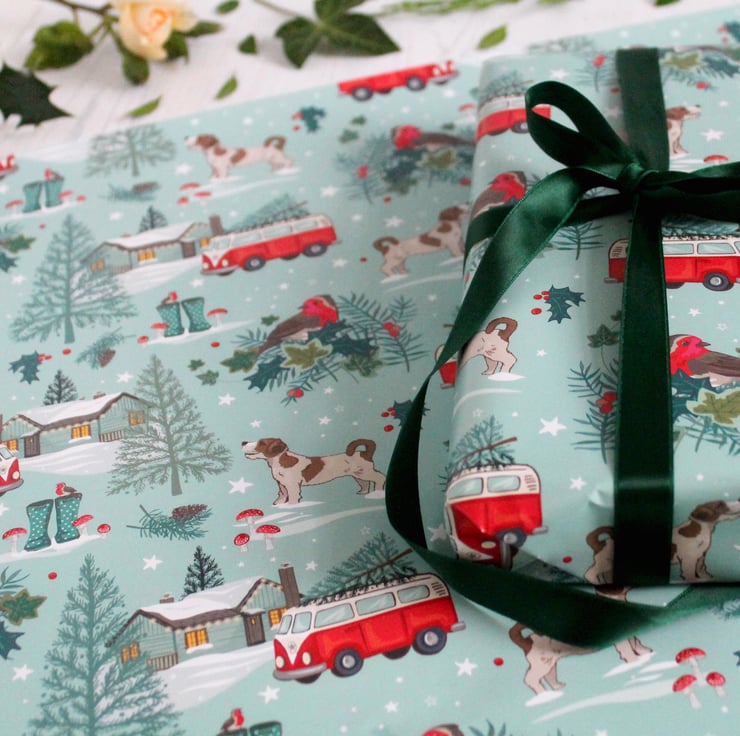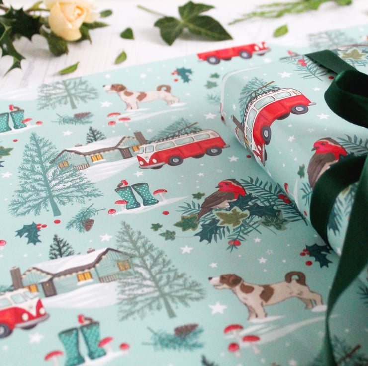 500mm x700mm sized sheet of gift wrap in 'Driving Home For Christmas' design. With matching gift tag.