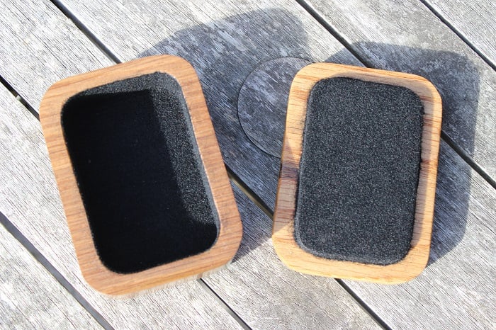Having made a number of shaped trinket boxes in oak and walnut, I wanted to enhance the surface decoration and experimented with inlaying the top with epoxy. The pattern was cut through the box lid, inlaid, sanded, sanded & sanded and then coated with a drying oil finish, which i hope you agree, provides a very attractive and durable finish.