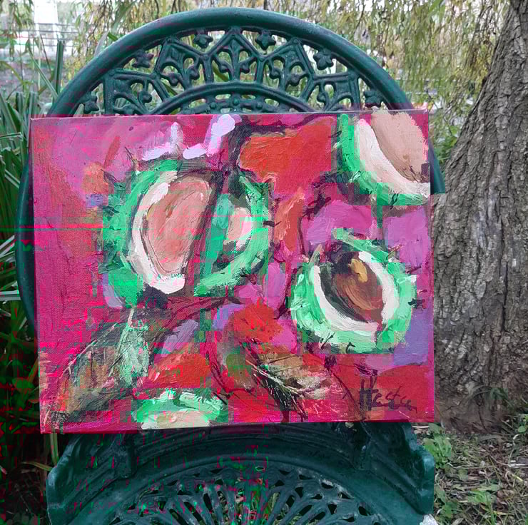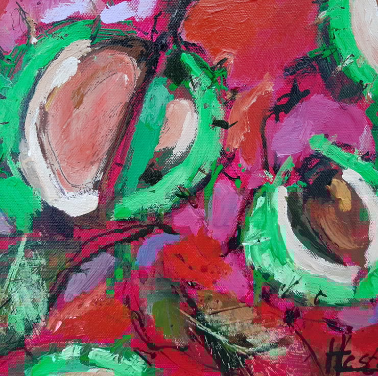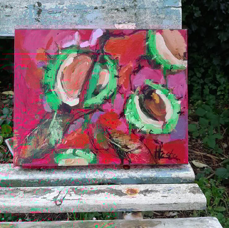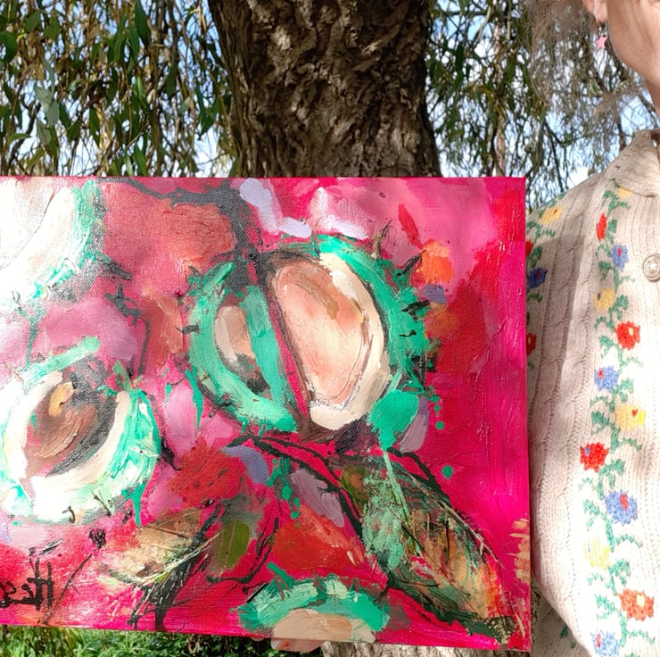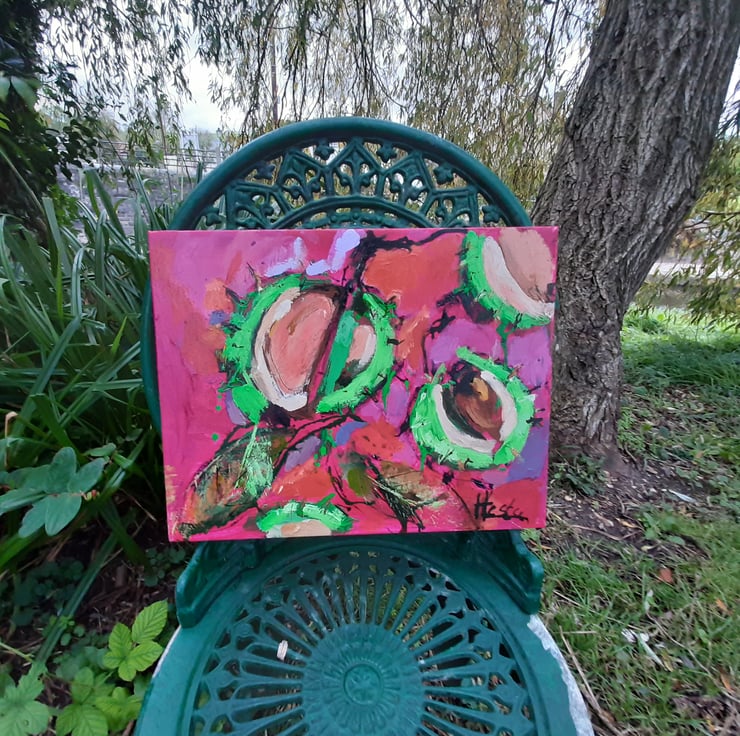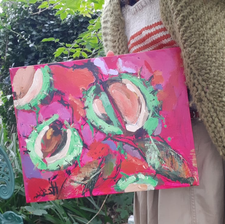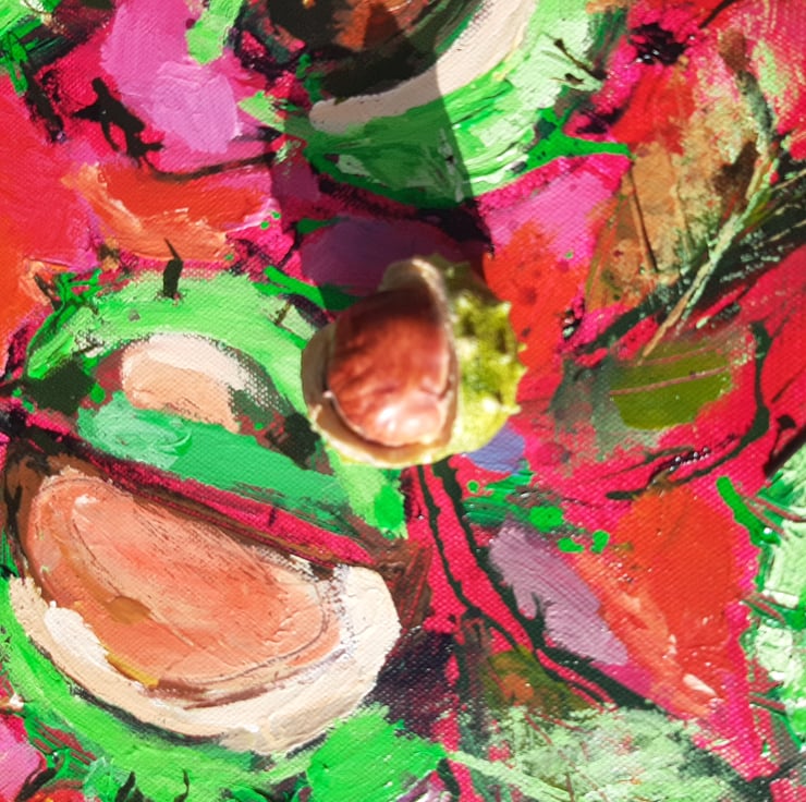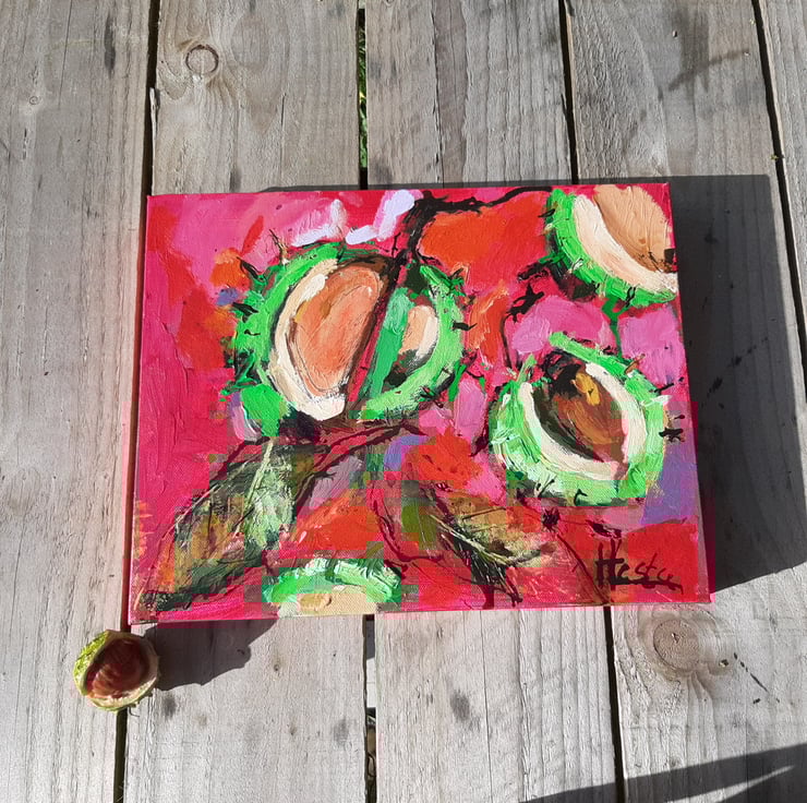 'Conkers 'Bright colour pop on this modern painting on canvas. 45 cm long on a 2 cm deep canvas. Confidently painted in a loose modern semi abstract style by myself hestasinglewood aka bodkincreates on Instagram.