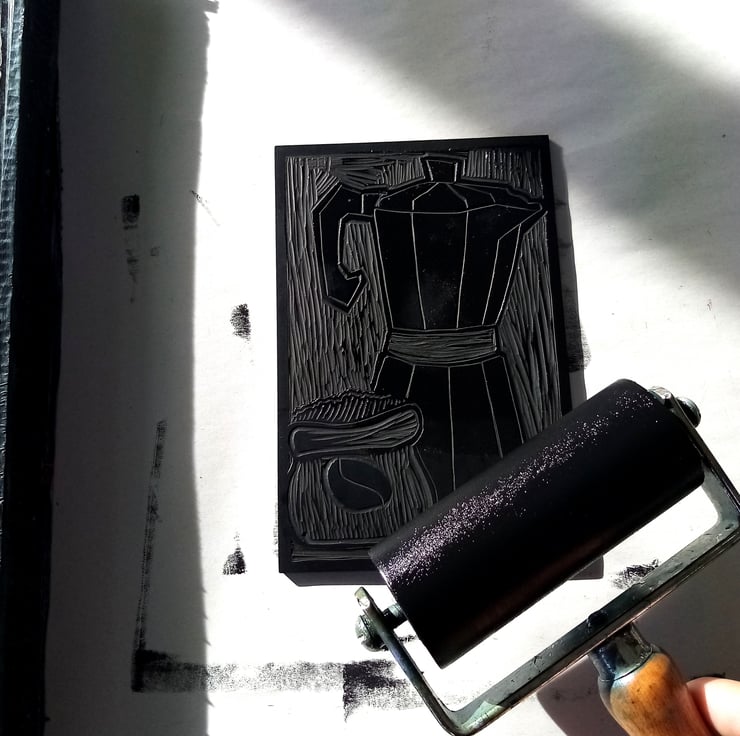 Handprinted Linocut Coffee Maker Coffee Lovers Unframed Wall Art Print