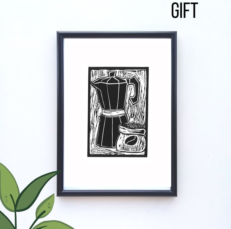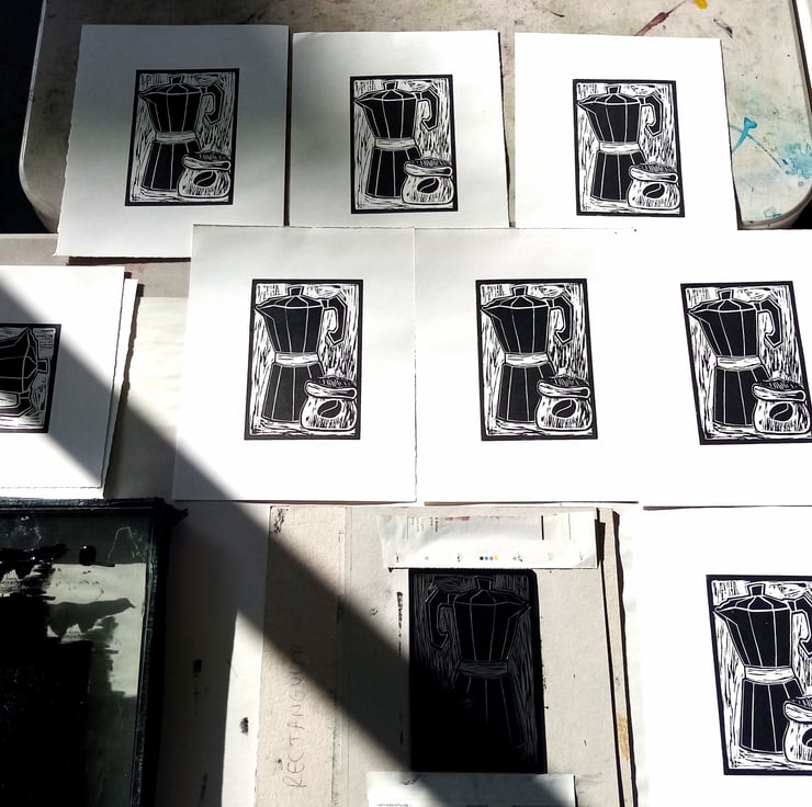 I created this punchy linocut print for a fairtrade event at the University of Brighton in 2017. I am a coffee lover myself and I used my expresso coffee maker as inspiration.