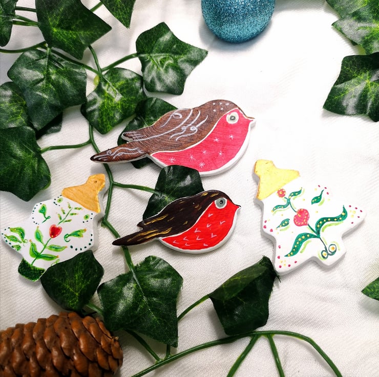 Folksy Christmas Trees for hanging on your Christmas or Yule Tree. Treat yourself to lovely hand painted heirloom ornaments, or gift a loved one.