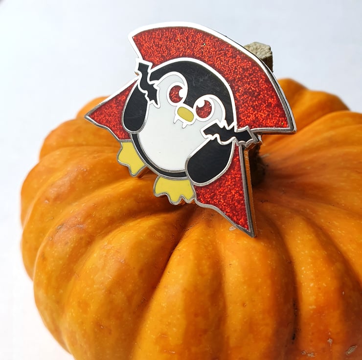 Vampire Penguin Pin Badge Enamel Brooch Pengula