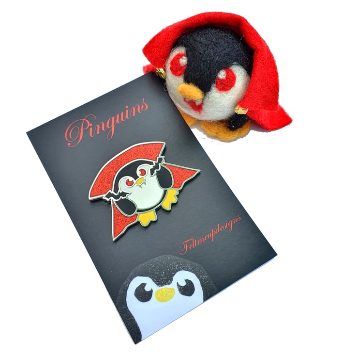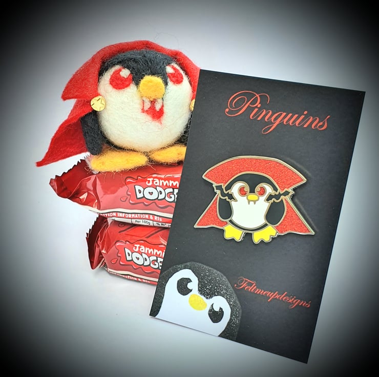 Fearsome glittery vampire penguin pin, but fear not Pengula is a Jampire and has a thirst for JAM so your jugular is safe! Perfect to pin on your jacket or bag to remind you that penguins are everywhere!
