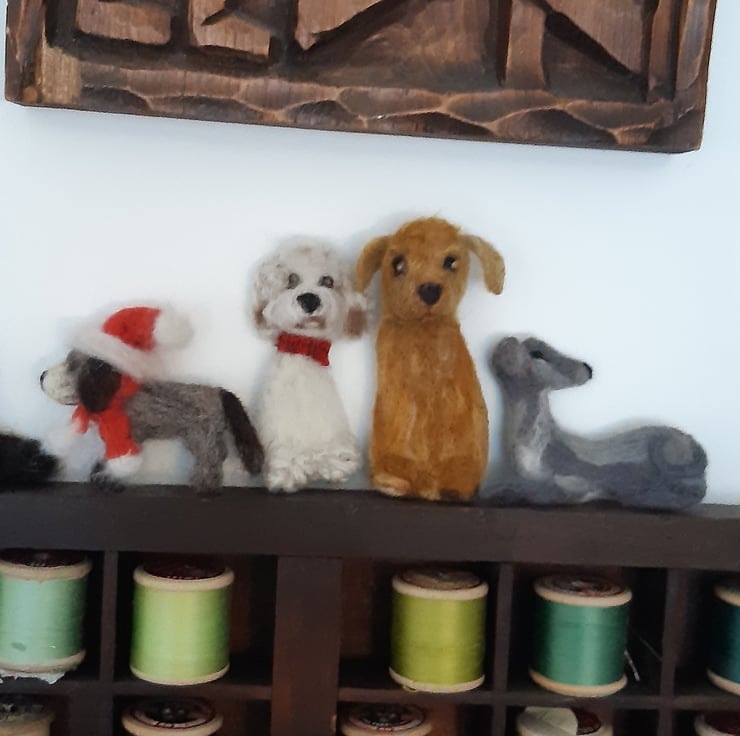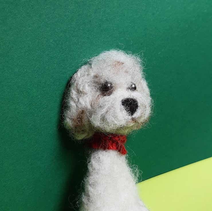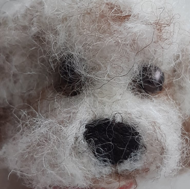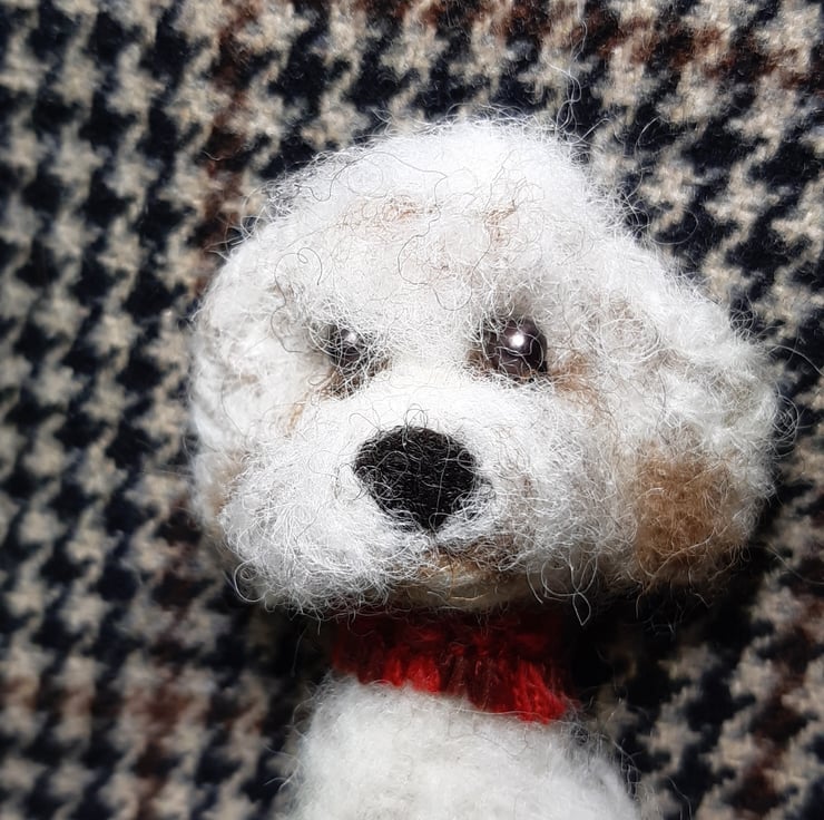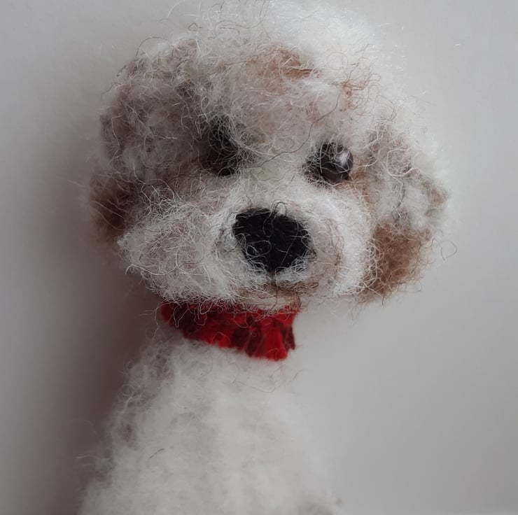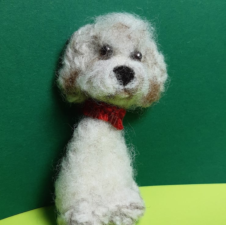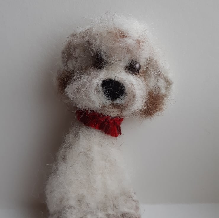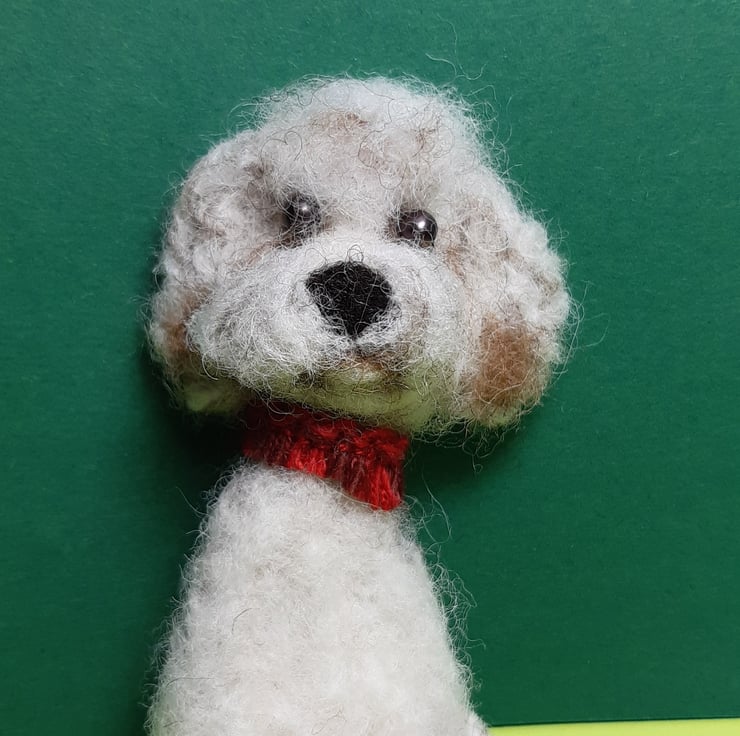 Cockerpoo dog brooch in tones of pale cream with light brown touches.