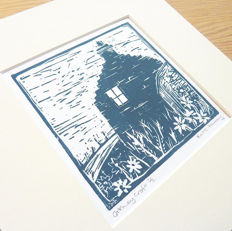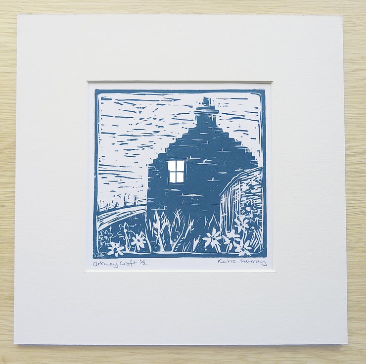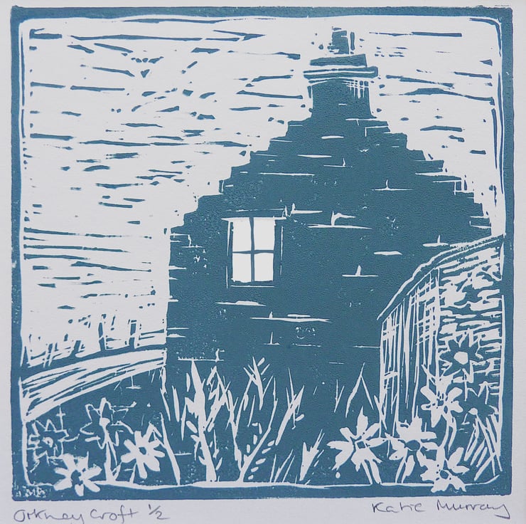 Handmade Linocut Cottage inspired by holidays in the Scottish Highlands and Islands