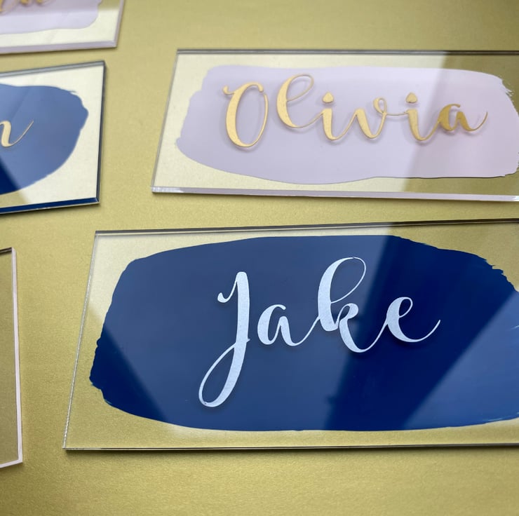 Personalised handpainted Acrylic NAME place CARDS Wedding table setting