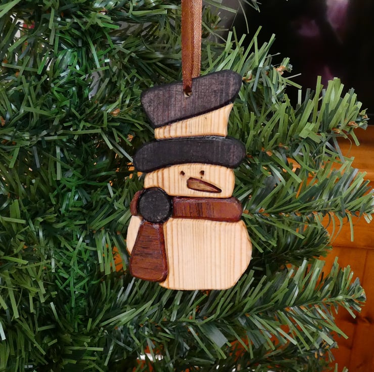 This unique wooden Snowman Christmas Bauble, has been upcycled from reclaimed pine and Sapele (also known as African Mahogany) wood. This fun Christmas ornament will make a lovely addition to your Christmas tree. This decoration will make a perfect gift for numerous occasions such as a gift for sister, a housewarming gift, a teacher's gift or a Christmas present.