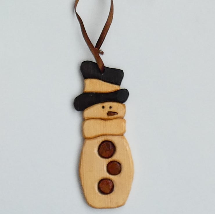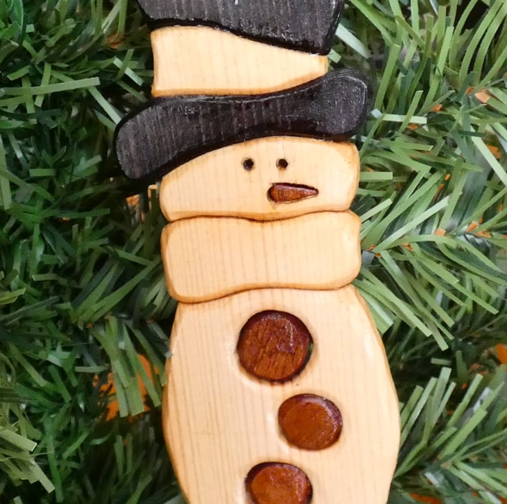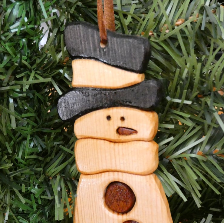 This unique wooden Snowman Christmas Bauble, has been upcycled from reclaimed wood. This fun Christmas ornament will make a lovely addition to your Christmas tree. This decoration will make a perfect gift for numerous occasions such as a gift for mum, a housewarming gift or a Christmas present.