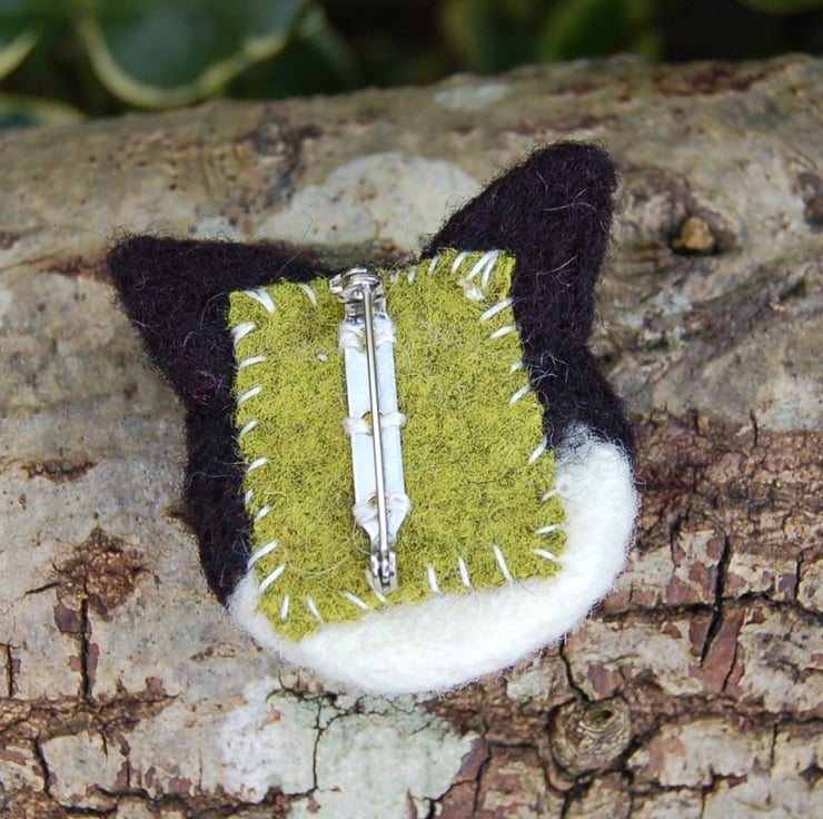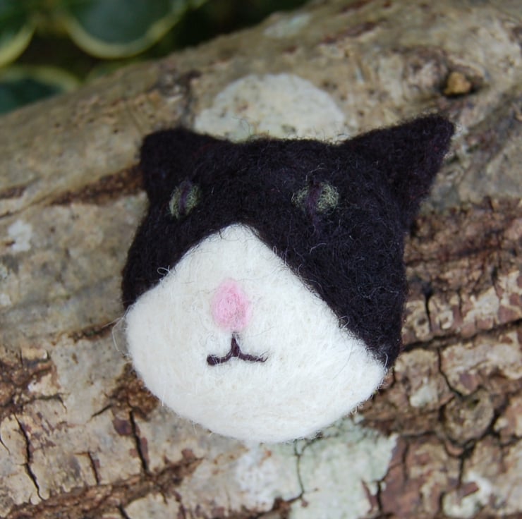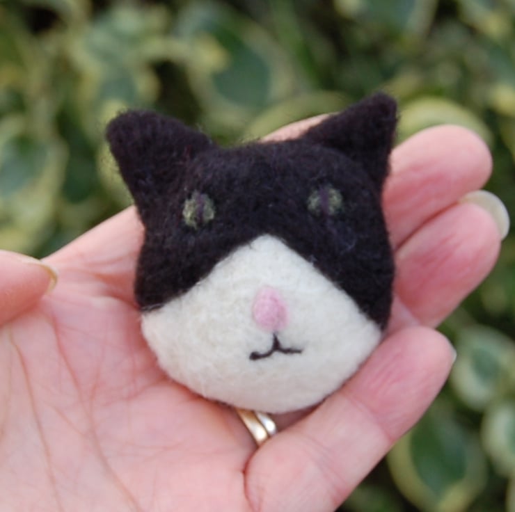 This woolly cat brooch has been made from unspun wool and by using a sharp barbed needle.