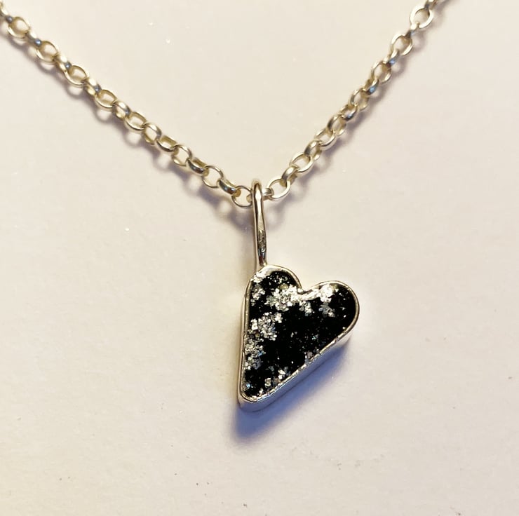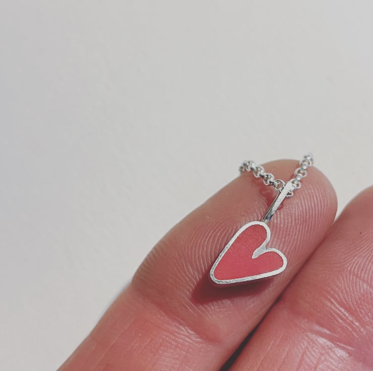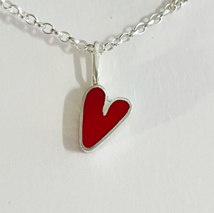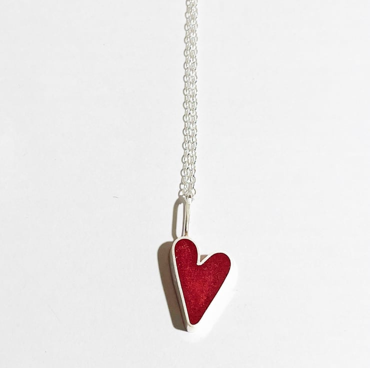 This is a small handmade sterling silver and coloured resin heart charm.