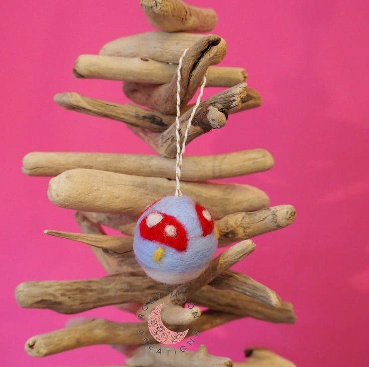 This cute little bauble with three toadstools scattered around will look so bright and cheerful on the Christmas tree for many years to come.