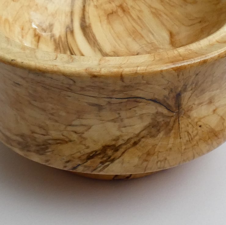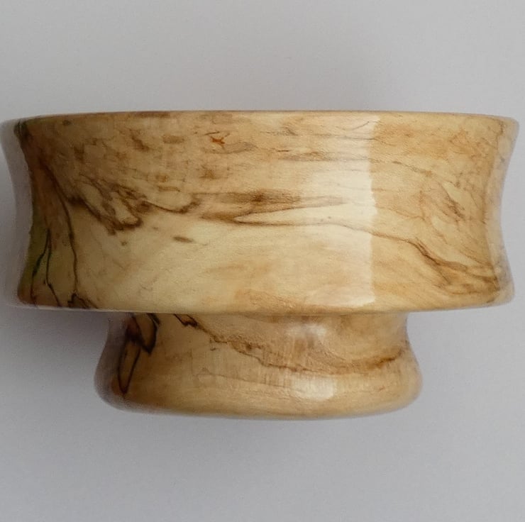 A piece of wood was selected then cut down to a suitable size to be woodturned. It was shaped on a woodturning lathe before being sanded to a smooth finish. The bowl has been finished with several coats of Lacquer to protect it and highlight the beautiful grain of the wood. The lacquer used is water and heat resistant, and toy safe.