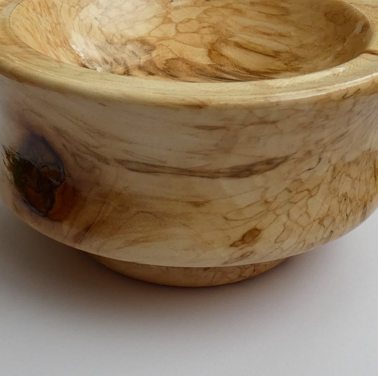 This wooden bowl has been woodturned from a solid piece of spalted Sycamore wood. It has been upcycled from reclaimed wood. This unique bowl is a 'One of a kind' item due to its grain. This useful bowl has many uses, put your keys, pocket change or Reiki crystals in it. Give it as a Christmas gift, a housewarming gift, a Wood Anniversary gift or even as a gift for dad.