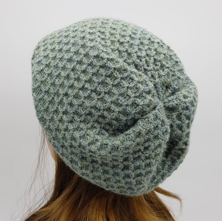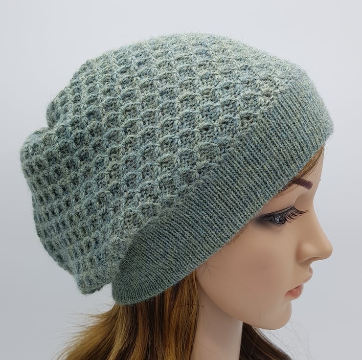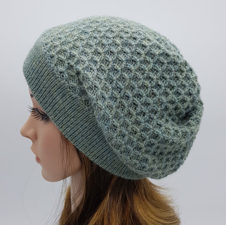 Alpaca beanie hat, handmade knitted baggy beret, fall tam for women.