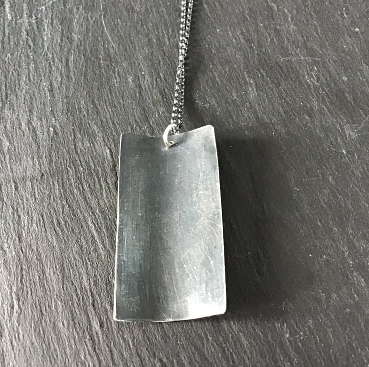 The pendant measures approximately 46x24mm and is sold with a dark patina sterling silver chain to compliment the design.