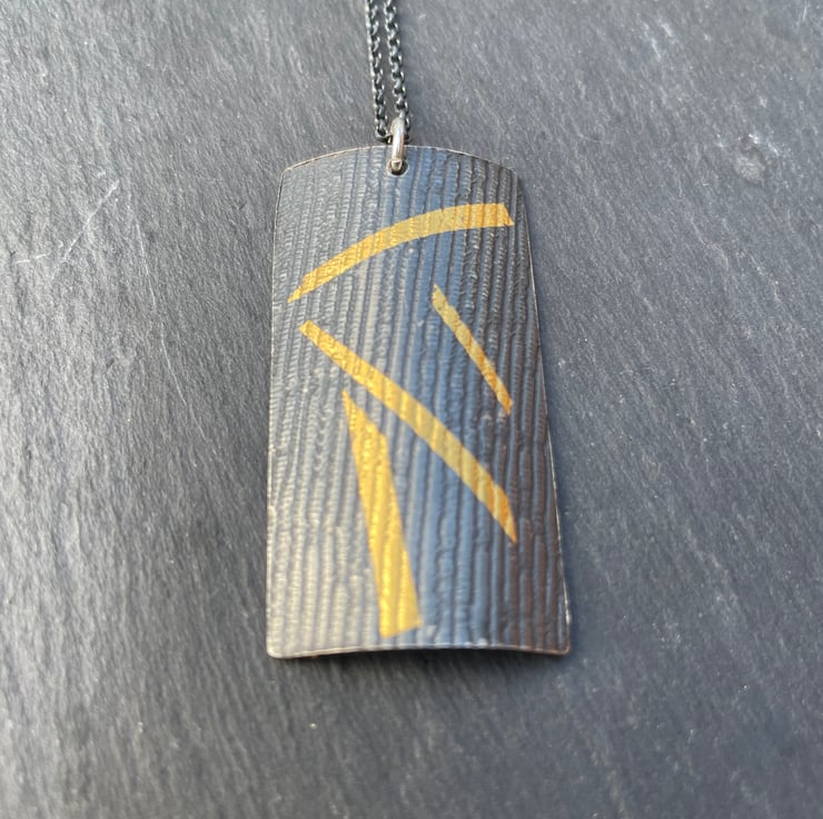 Made using the Keum Boo technique of fusing 24ct gold to silver, this beautiful pendant is a striking addition to any collection.
