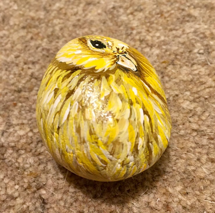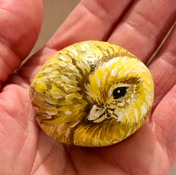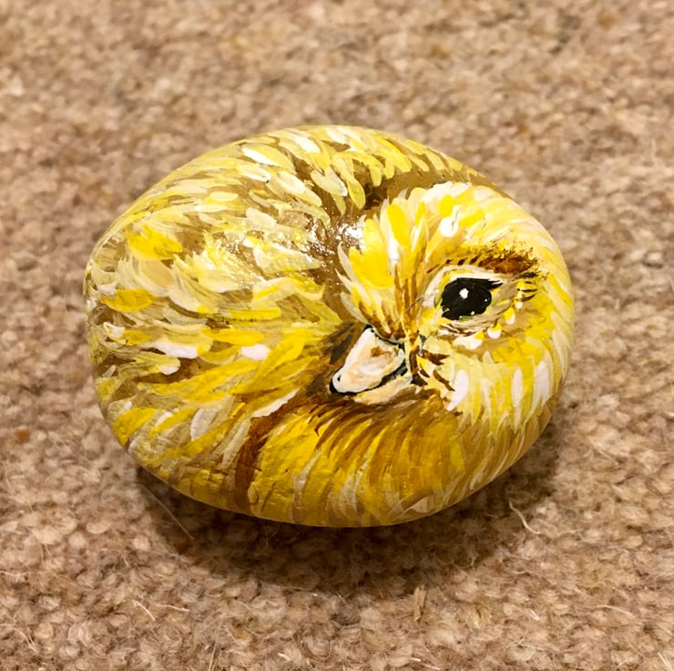 This little duckling has been painted onto a smooth stone and glazed for a glossy protective finish