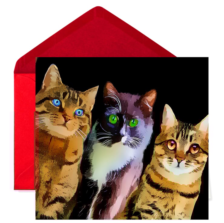 This Cat Card is a bit different from my other Cards, as the Cats are slanted against a black background. Look at their eyes too!!!